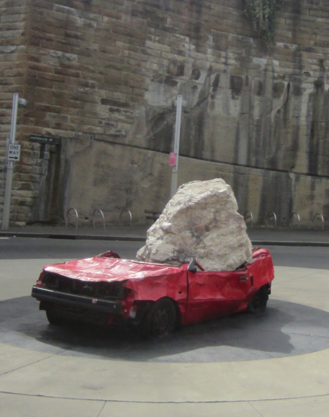 First on the list was a bus tour of Sydney and environs, and believe me when I say Sydney is a very large city. One of our first sights was "The Rocks," which is the site of the first settlement of Sydney in 1787. One of the things that we saw was this public art, but the really interesting aspect is the rock behind it: sandstone, which is all over the place. Most public buildings are made of it, and it underlies Sydney. Not many useful large trees in this area, so sandstone became the building material of choice.